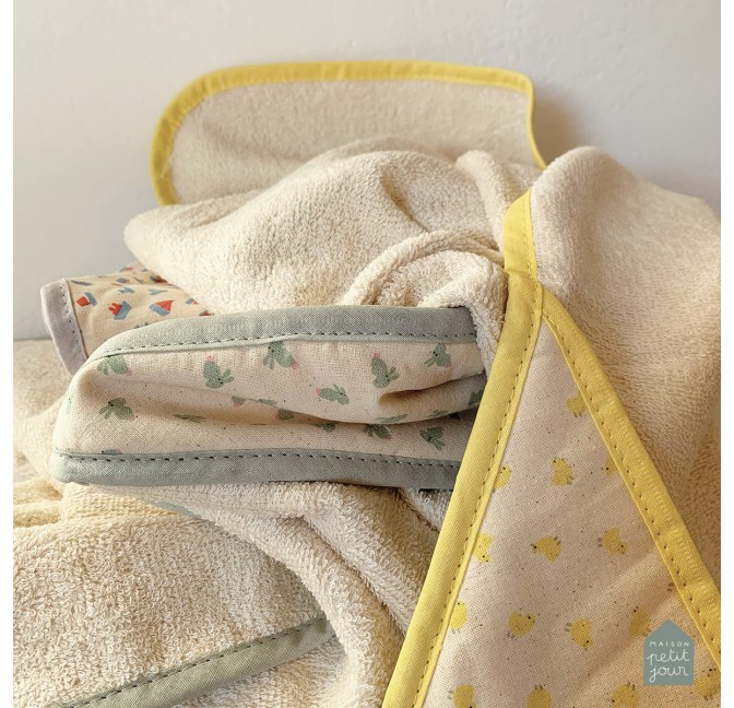 A comfy cotton towel with a lovely little hood, that will make bath time feel like the sweetest adventure.