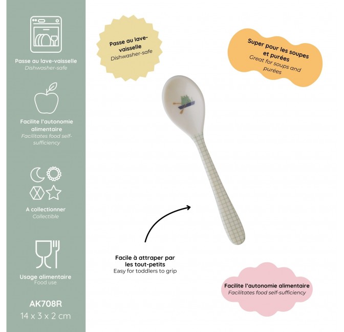 Perfect for little hands to hold, this spoon has rounded edges, safe for imprecise movements.