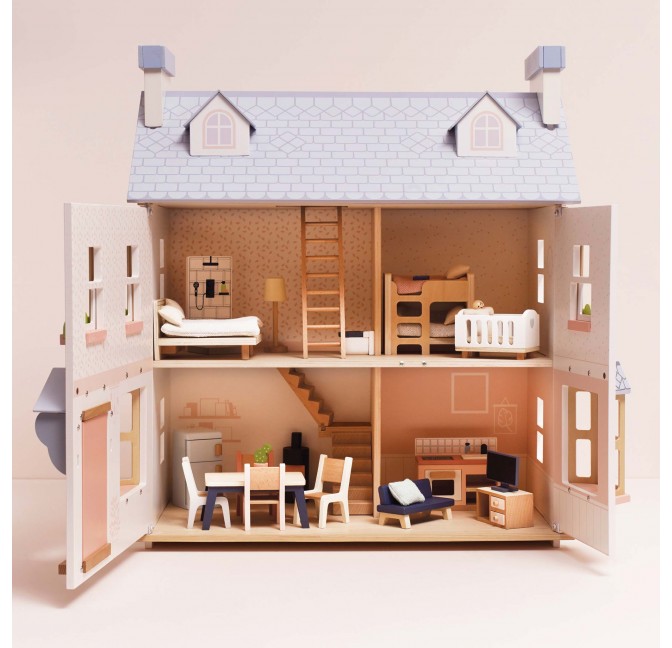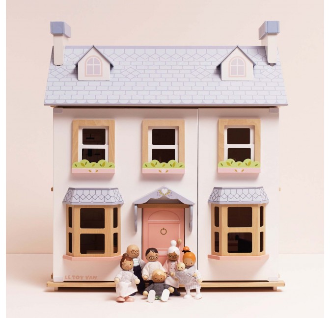 Welcome to Mayberry Manor. This beautiful home of miniature is crafted from FSC™- certified wood, featuring classic paintwork in soft pastel pinks, blues hues and fresh white, using non-toxic, water-based paints for child safe play. Full of lovely details and features to discover, this truly wonderful toy is bound to spark imaginative, play based learning for generations to come.