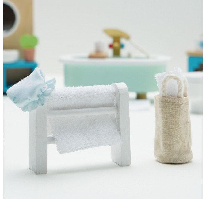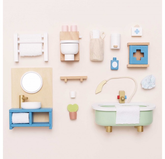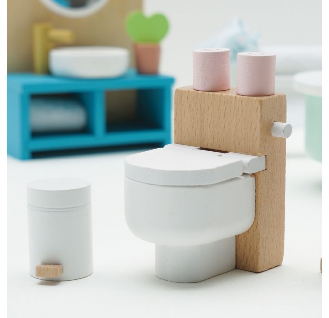 WOODEN DOLLS HOUSE BATHROOM FURNITURE - 19 PC (4) FSC 100%
