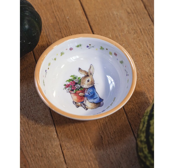 A set of cutlery, designed for very young children. There is a fork, a dull knife and a spoon each with a different coloured spotted design.
