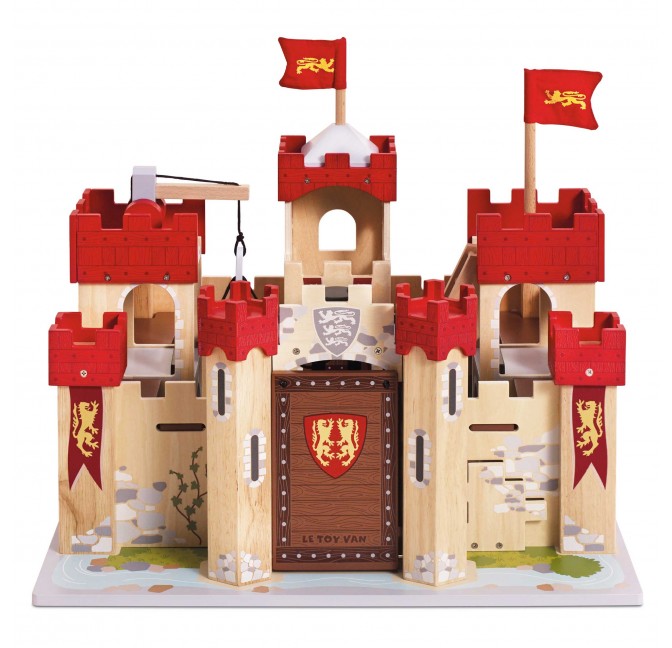 Magical adventures await with this stunning FSC™-certified wooden Lionheart castle—the perfect gift for budding knights and medieval princesses. Designed to spark imaginative play,this beautifully detailed castle is a standout addition to any small world play collection. Packed with interactive features, the Lionheart castle includes a functioning drawbridge,pull-up gate, pulley winch, flags, turrets, a prisoner’s cell, and a breakaway wall, offering endless opportunities for immersive play and storytelling. Crafted from sustainable wood, it’sa timeless treasure that inspires creativity and adventure.