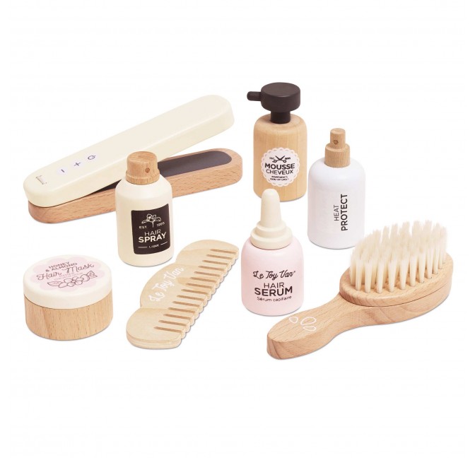 Place au style ! Ce ravissant set de coiffure en bois FSC™ ravira les petits coiffeurs en herbe. Dans des tons doux et élégants, il comprend :...