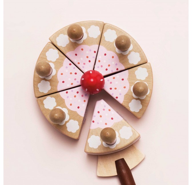 Un véritable régal pour jouer à faire la fête ! Ce super gâteau d’anniversaire en bois certifié FSC™ se compose de parts reliées par du velcro, à découper avec la pelle à gâteau fournie. Il est décoré de bougies amovibles et d’une fraise amovible en guise de touche finale. Idéal pour les jeux d’imitation et pour développer la motricité fine.
