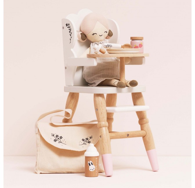 Conçue pour accueillir les poupées et doudous de 30 à 35 cm, elle est parfaite pour inventer de tendres moments de repas et de soin.